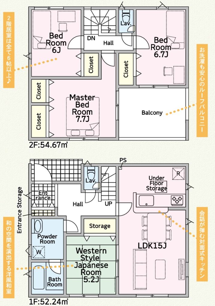 ■土地面積/1号棟:173.54㎡(52.49坪)