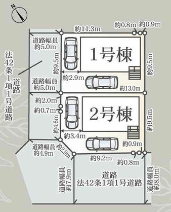 ■土地面積/1号棟:124.97㎡(37.80坪)2号棟:123.65㎡(37.40坪)