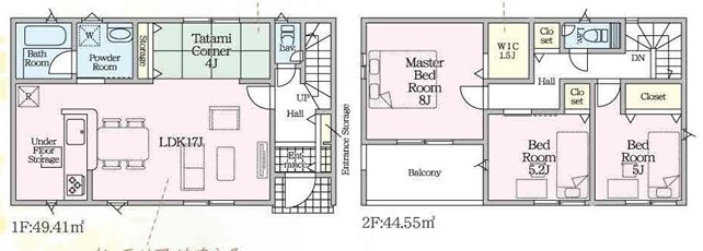 ■建物面積/1号棟:100.44㎡(30.38坪)2号棟:95.58㎡(28.91坪)