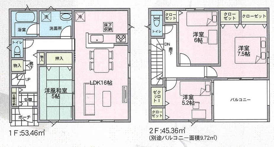 ■建物面積/ 1号棟:98.82㎡(29.89坪) 2号棟:98.82㎡(29.89坪)