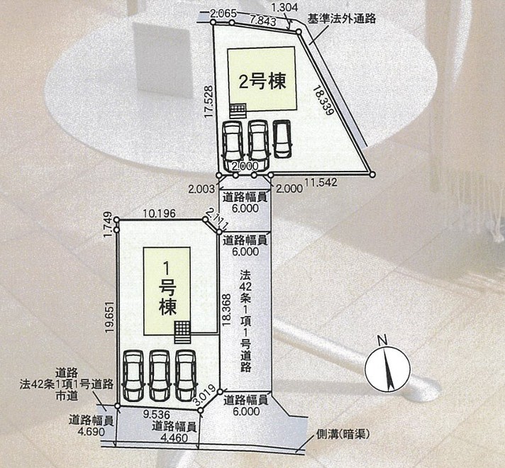 ■土地面積/1号棟:250.67㎡(75.82坪)2号棟:230.06㎡(69.59坪)